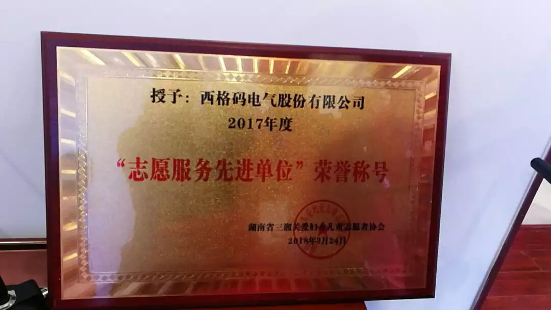 三月春风暖神州,雷锋精神励人心。为纪念雷锋同志,发扬雷锋精神,3月24日,西格码电气股份有限公司受邀出席了”健康中国行、歌舞跃盛世“雷锋月主题活动。本次活动由湖南省三湘关爱妇女儿童志愿者协会组织举办,鉴于在公益事业上的贡献和影响力,会务组对西格码进行了表彰!