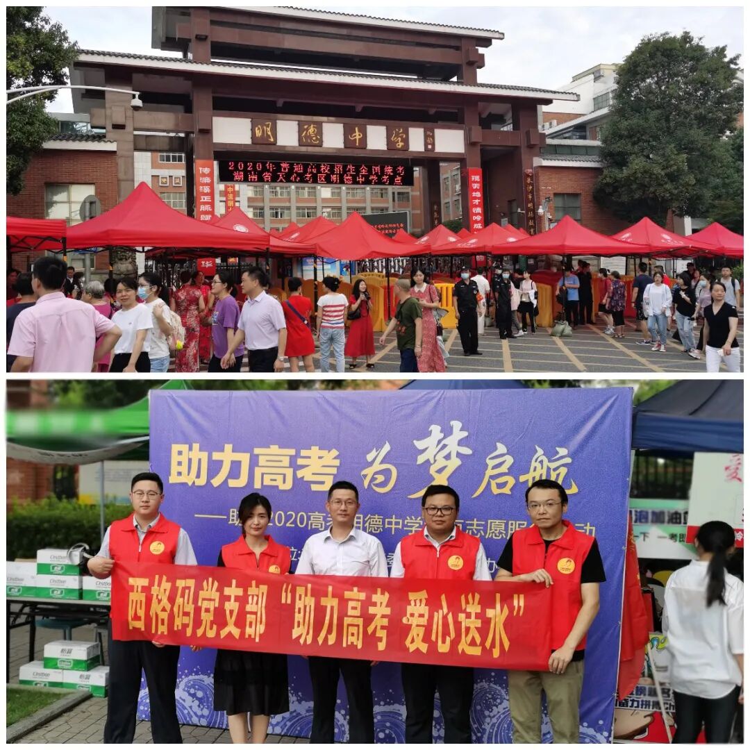 十年磨一剑,今朝展锋芒!7月7日,一年一度的高考正式拉开序幕,为了助力高考考生,中共西格码电气股份有限公司支部委员会在长沙高考考点明德中学组织开展了 “助力高考,爱心送水”志愿服务活动,积极践行企业社会责任,给莘莘学子和等待的家长免费提供矿泉水,并鼓舞考生为梦想加油,同时也准备了风油精、湿巾、藿香正气水等防暑降温用品,得到了很多家长和考生们的点赞。